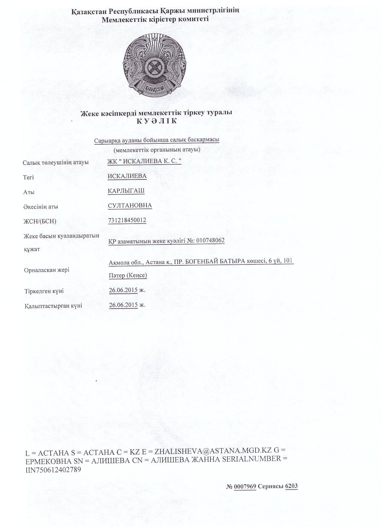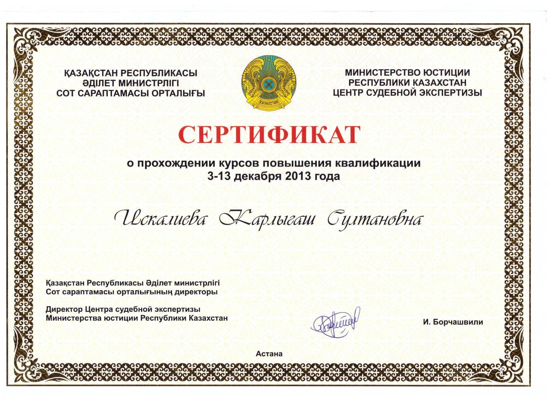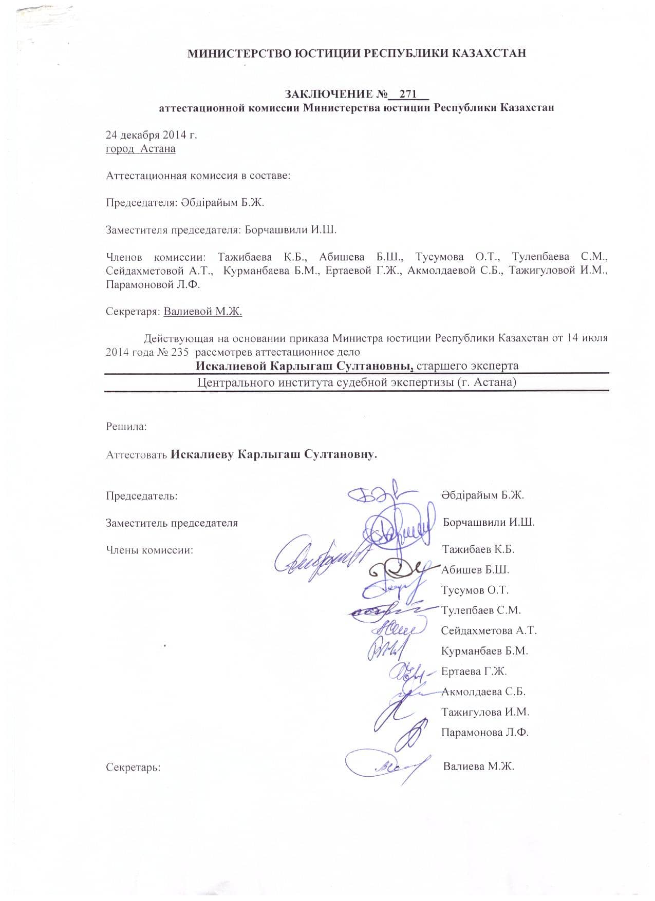 «ИСКАЛИЕВА К. С.» Вид деятельности: Судебно-экспертная